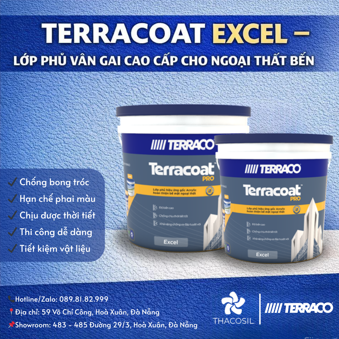 Trong đó, Terracoat Excel là dòng lớp phủ vân gai Acrylic trộn sẵn nổi bật, kết hợp giữa tính thẩm mỹ, độ bền và hiệu quả kinh tế, phù hợp cho cả nội thất và ngoại thất.